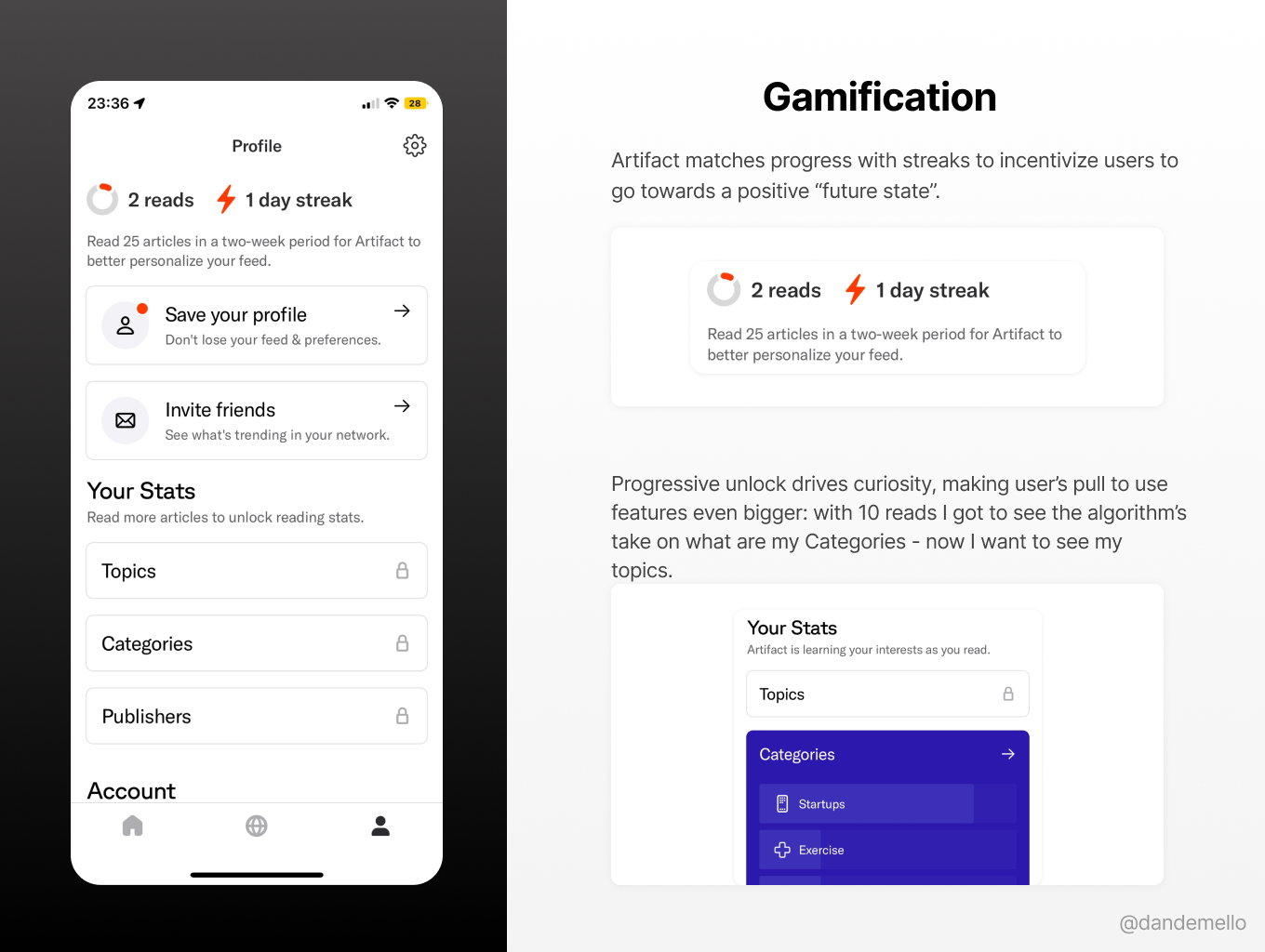 Artifact use this for something else: since they are on Beta, the main goal is to learn from users and make the product better. To get the most engagement possible, they applied gamification by hiding the knowledge they have about you until you read more. There might be technical reasons to do so (i.e. after the first couple of reads the database is not yet enough to output reliable results), but the used this limitation well by creating curiosity.